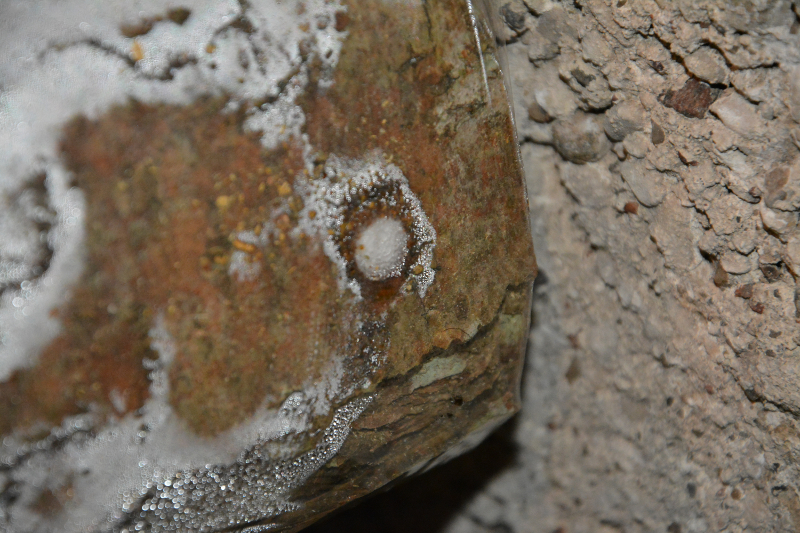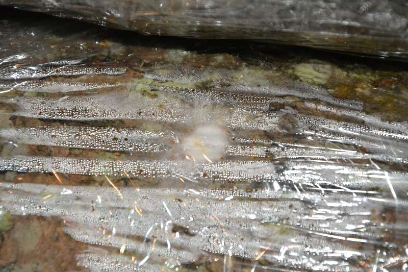 Pildistatud pakud on inokuleeritud 8 päeva eest. Läbi kattekile on näha, et tüübliotsad on mütseelist valgeks muutunud, mütseel on ülekandest toibunud ja kasvab paku sisse edasi.