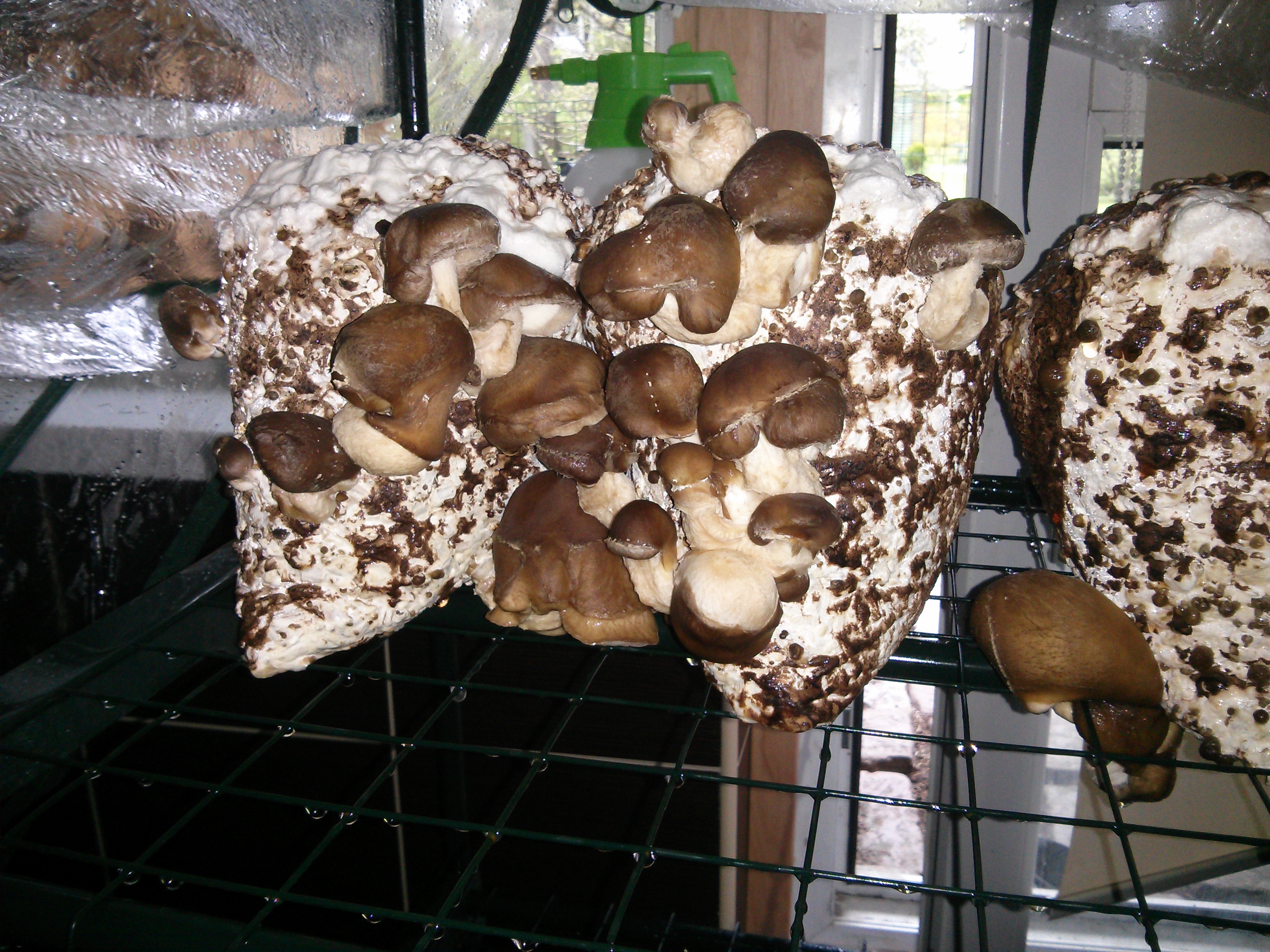Tegin veel väikse vea, nimelt tegin juurde terve hunniku ca 20 kotti shitaake seeni ja selgus et temp kus shiitake müütseel arenes oli liiga madal 20 c ja enne kui niidistik jõudis täielikult läbi areneda hakkasid tekkima kotti viljakehad. Kohesel tegin vigadeparanduse ja nüüdseks on temp 23 C peal. Loodetavasti jätkub niidistiku areng ja viljumine peatub. Lisan mõningad pildid.
