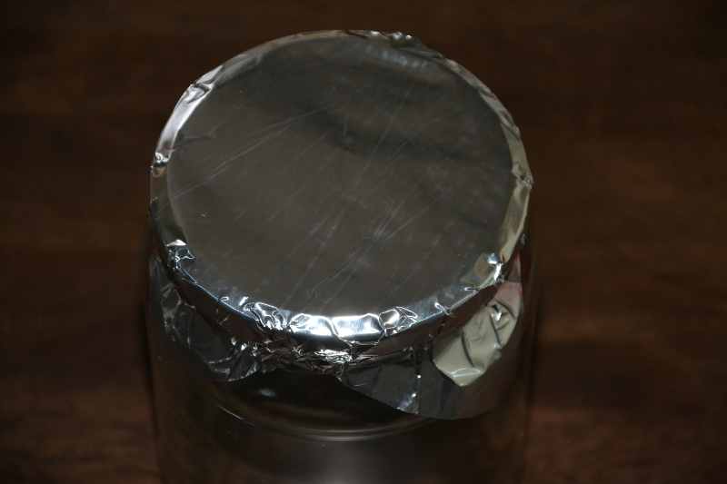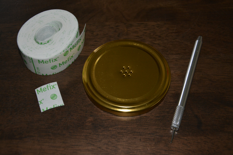 Foliumi võid koloniseerumise ajaks kaanele peale jätta, see hoiab kontaminante otse filtrile langemast. Siis piisab kindlasti ühest kihist teibist. Jälgi ainult, et filter fooliumi külge kinni ei kleepuks, muidu on gaasivahetus takistatud. Kontrolliks tuleb fooliummütsi kaane peal veidi keerata. Proovi tegutseda nii, et fooliumi servi peale sterilisatsiooni enam üles ei peaks voltima.